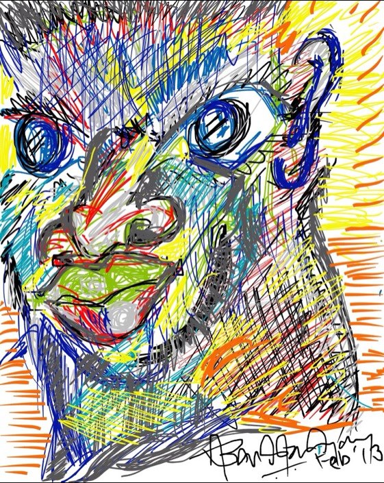 This painting is named Lustful Colours by Hille Le. We plucked it from Aditya Bandopadhyay’s social networking page. We love the person in the painting. The red lines on his nose, the orange ray like strokes around him, his big blue eyes and thick juicy lips. The upper lip being green and the lower lip has smudges of red. This face is passionate, intense, troubled, anxious, scared and unreal. Almost diabolical. Aditya has made this on his new Ipad mini.