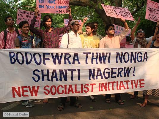 International, The WorkerIt is never illegal to be human – Mukul Dube On 7 May 2014, groups and individuals demonstrated outside the Assam Bhavan in Chanakyapuri, Delhi, against the recent killings of Bangla speaking Muslims in Bodoland. Photo Article by Mukul Dube Share this:Share Click to share on LinkedIn (Opens in new window) LinkedIn Click to share on Pinterest (Opens in new window) Pinterest Click to share on Tumblr (Opens in new window) Tumblr Click to share on Facebook (Opens in new window) Facebook Click to share on X (Opens in new window) X Click to share on Reddit (Opens in new window) Reddit Click to share on Pocket (Opens in new window) Pocket Like Loading... Related