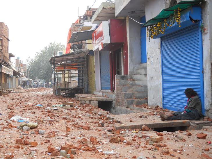 इन इलाकों में घूमते हुए मैं ब्लॉक नंबर 28 के मुहाने पर पहुंचा। सारी दुकानें बंद थीं और सड़क ईंट और कांच की बोतलों से अटी पड़ी थी। यहां एक दुकान की शटर से पीठ सटाए एक अधेड़उम्र की औरत बैठी मिली। हुलिया पागलों जैसा, उलझे बाल, मैली शक्ल, ढली सूरत और सूखे होंठ। शक्ल से भूखी जान पड़ती थीं, उन्हें प्यास भी लगी थी। घंटों से बंद दुकानों ने उनकी भूख-प्यास बढ़ा दी थी। मुझे देखतते ही छत की तरफ इशारा करती हुई बोलीं कि ज़रा ऊपर से किसी को बुला दो। वह कुछ खाने के लिए मांग रही थी। उन्होंने  अपना नाम बिमल बताया।मैंने पूछा कि ये सब क्या हो रहा है? बोली सब काम पर हैं। जाने यह कौन-सा काम है, उनका ख़ुदा बेहतर जाने। मैं आगे बढ़ गया जहां एक भीड़ गुस्से और बदले की आग में तप रही थी। बजरंग दल जैसे हिंदूवादी संगठन एक्टिव हो गए हैं। इन्होंने दिल्ली के एलजी नजीब जंग को चिट्ठी लिखकर कहा है कि जिहादी मानसिकता वाले मंदिरों पर हमला कर रहे हैं। अपराधियों की फौरन इनकी गिरफ्तारी होनी चाहिए। इस चिट्ठी के ज़रिए बजरंग दल यह मैसेज देने की कोशिश कर रहा है कि वाक़ई मंदिरों पर हमले किए जा रहे हैं। लेकिन मज़े की बात है कि ये कथित हमले देश में बीजेपी की सत्ता और असर बढ़ने के बाद देखने को मिल रहा है।