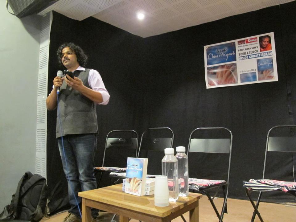 Inside Chattisgarh was read and reviewed on the 7th of February at THE HIVE. This event was organised by Hillele Combat TV. Questions about what is real development were discussed. Actor Kenny Basumatary and academician Zeba Imam read out from Professor Ilina Sen’s book. Mayank Saxena recited some inspiring poems. Satyen Bardoloi spoke to Prof Ilina Sen about the book, about the women in Bastar and about Shankar Guha Neogi’s work.
