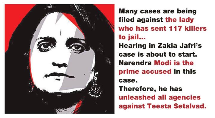 तीस्ता, पहली और आखिरी व्यक्ति हैं, जिनकी लड़ाई ने 117 हत्यारों को जेल पहुंचाया, जिसमें से एक गुजरात की नरेंद्र मोदी सरकार की मंत्री भी थी। इस महीने की 27 तारीख को ज़किया जाफ़री मामले में अंतिम सुनवाई शुरु हो जाएगी। प्रधानमंत्री नरेंद्र मोदी, इस मामले में मुख्य आरोपी हैं।