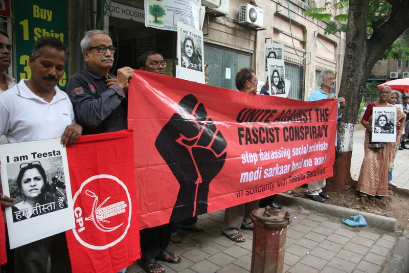 On the first day ie on the 18th of July, several members of CPI (Communist Party of India), Documentary Film Maker Anand Patwardhan ,other activists and friends stood outside the CBI office to show solidarity with the Activists. Teesta Setalvad and Javed Anand thanked all the people who had come to support them.