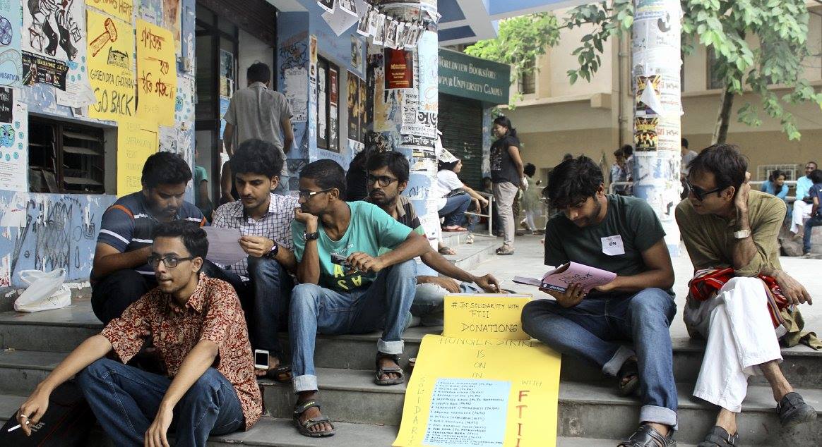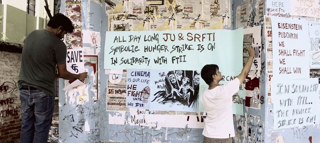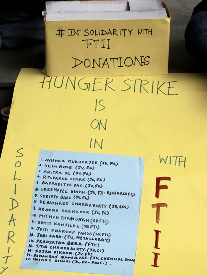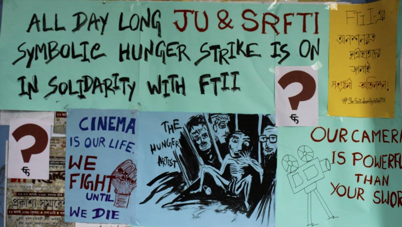 Yesterday twenty students sat on a day long symbolic hunger strike that took place in Kolkata, at Jadavpur University. A senior professor from the Film Studies dept went hungry too, along with the students from many departments of #JU and #SRFTI.