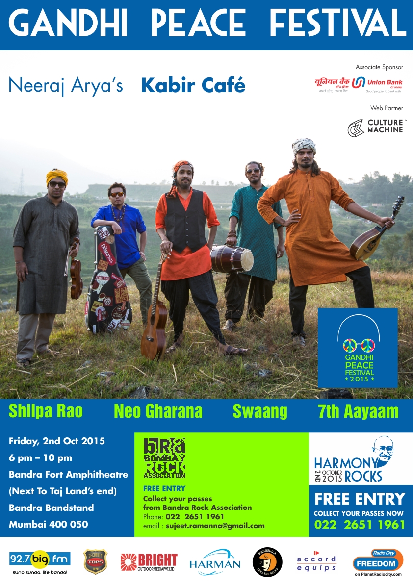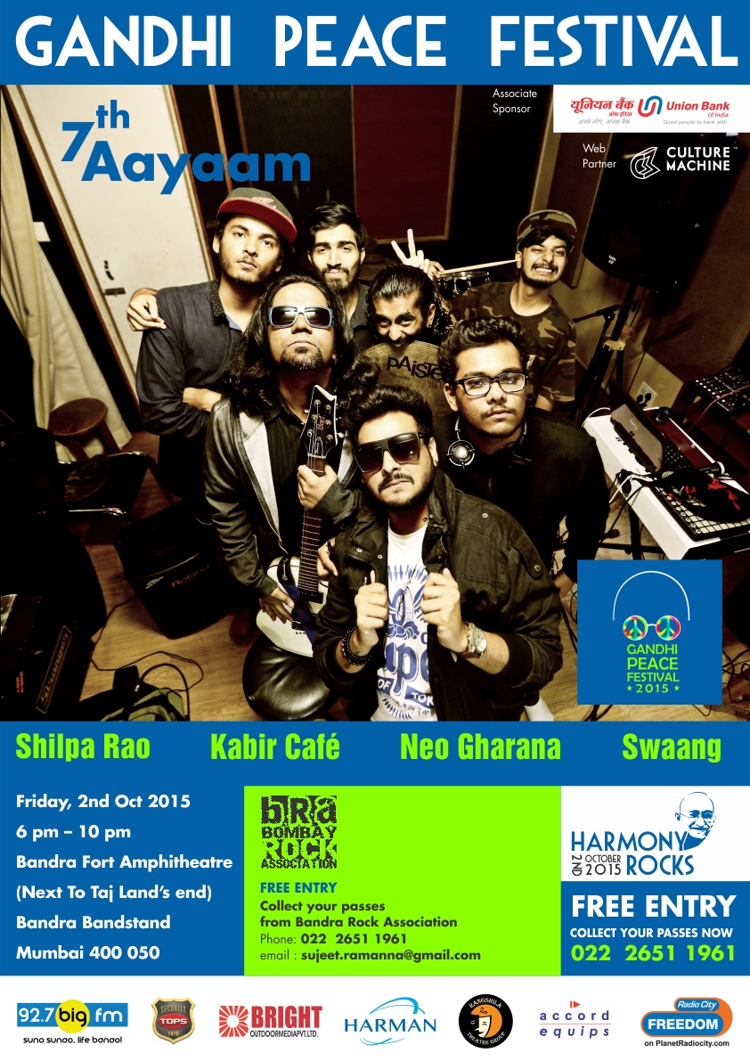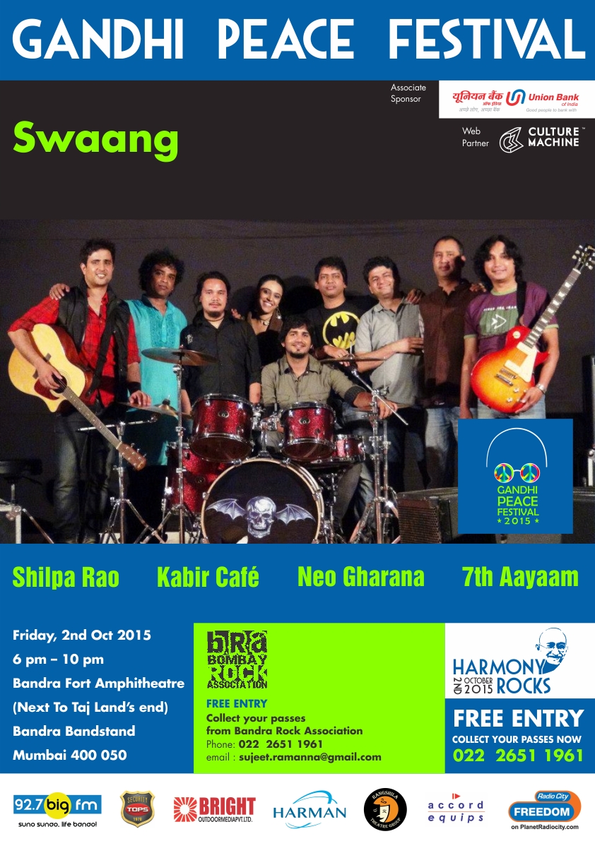 ~ So celebrate Peace and Music with Bombay Rock Association at the Gandhi Peace Festival 2015 – Harmony Rocks at Bandra Amphitheatre, Land’s End, on 2nd October, 6 PM!