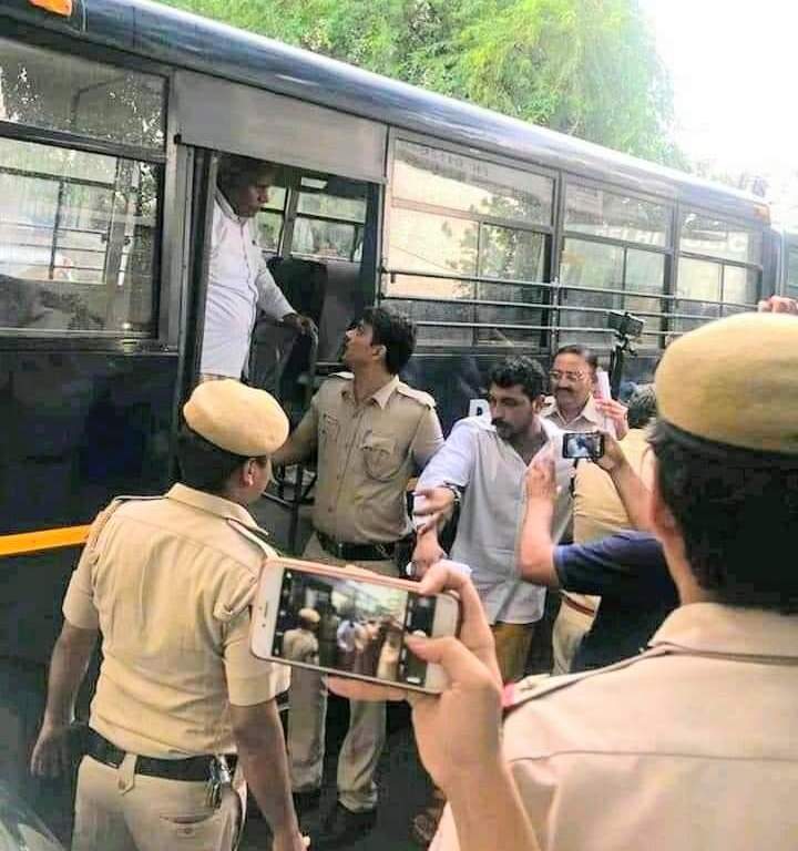 In an interview with Sabrangindia, Vipin Gouraiya of the Bhim Army Student Federation said, ‘near the Okhla metro station a senior police officer told us everything is alright and you can march to the temple. However when we reached the temple we saw some bikes burning , the police started firing in air and picked up Chandrashekhar Azad and Vinay Ratan Singh without informing anyone. They tied him up and beat him up with lathis all night long’.