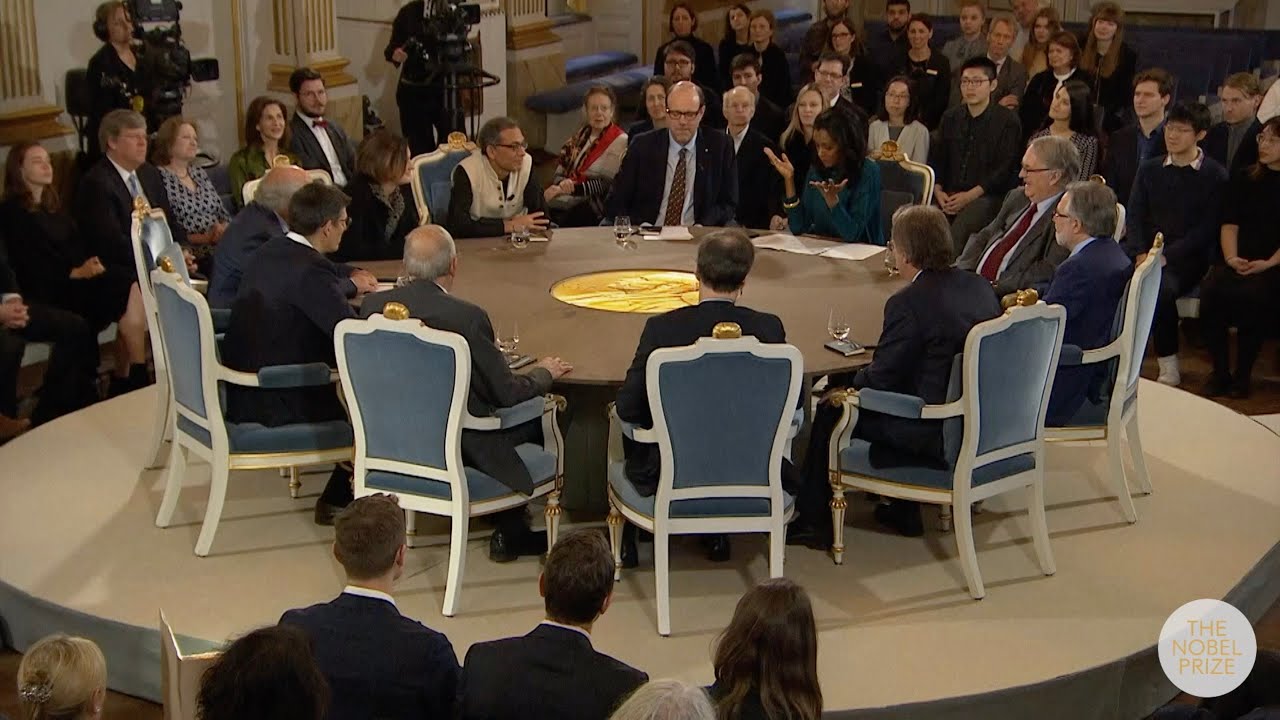 The 2019 Nobel Laureates met at the old Stockholm Stock Exchange Building (Börshuset) in Gamla stan, Stockholm for the traditional round-table discussion and TV program ‘Nobel Minds’. The discussion was hosted by the BBC’s Zeinab Badawi. Copyright © BBC Global News Limited and SVT 2019 Show more